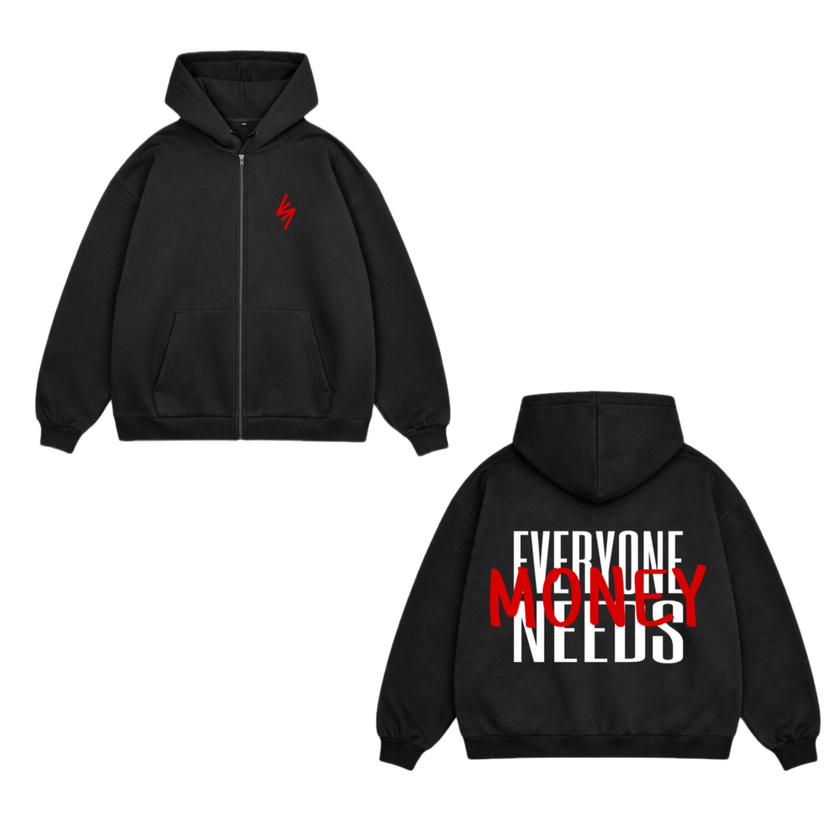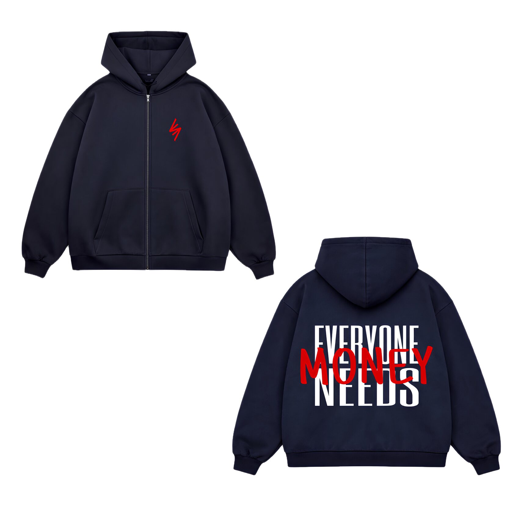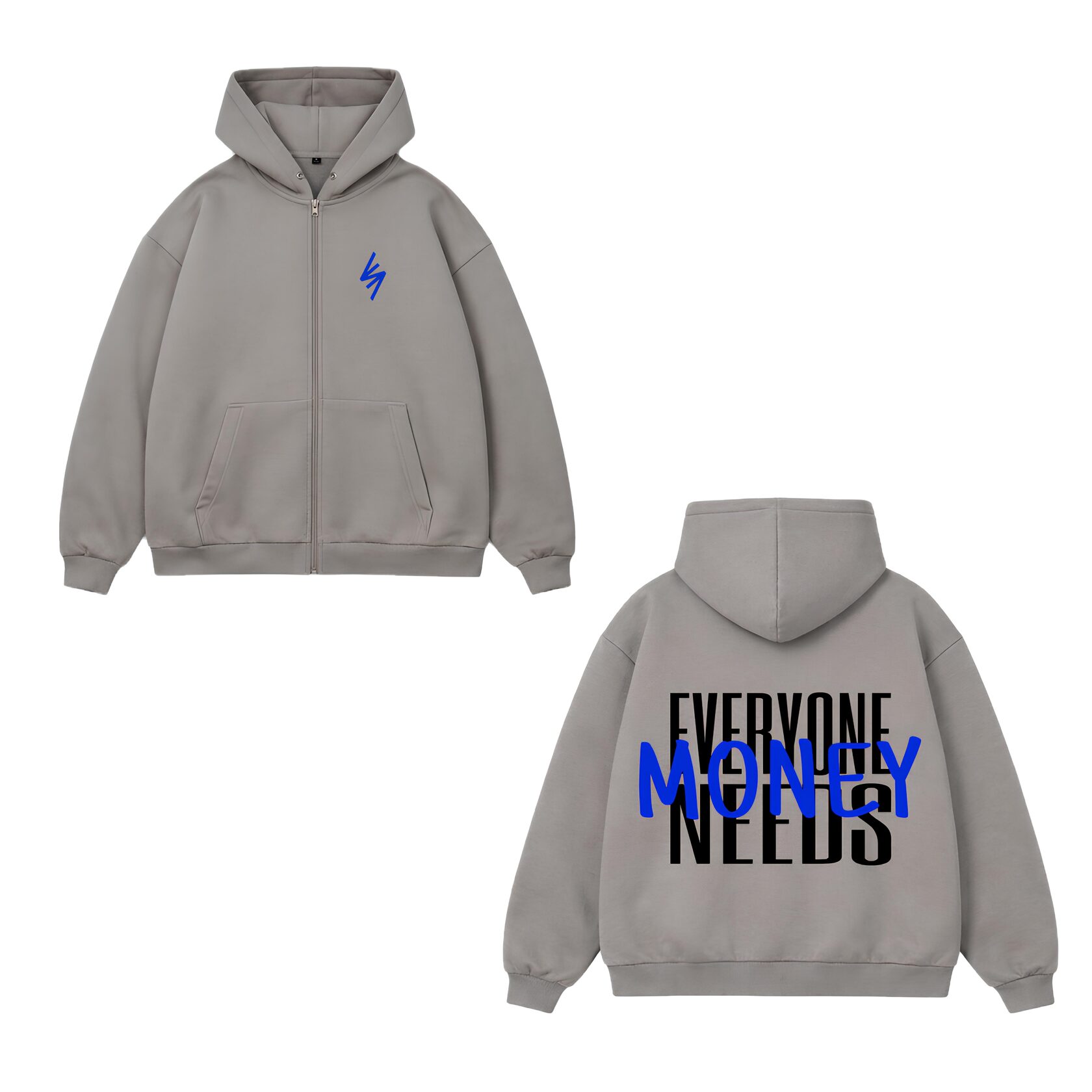 Зип-худи оверсайз-кроя выполнено из плотного трикотажного полотна «футер» с мягким начёсом на изнаночной стороне, либо без начеса. Модель имеет свободный силуэт, среднюю длину и спущенную линию плеча. Манжеты и пояс выполнены из эластичного ребристого полотна «кашкорсе», что обеспечивает комфортную посадку и сохранение формы.