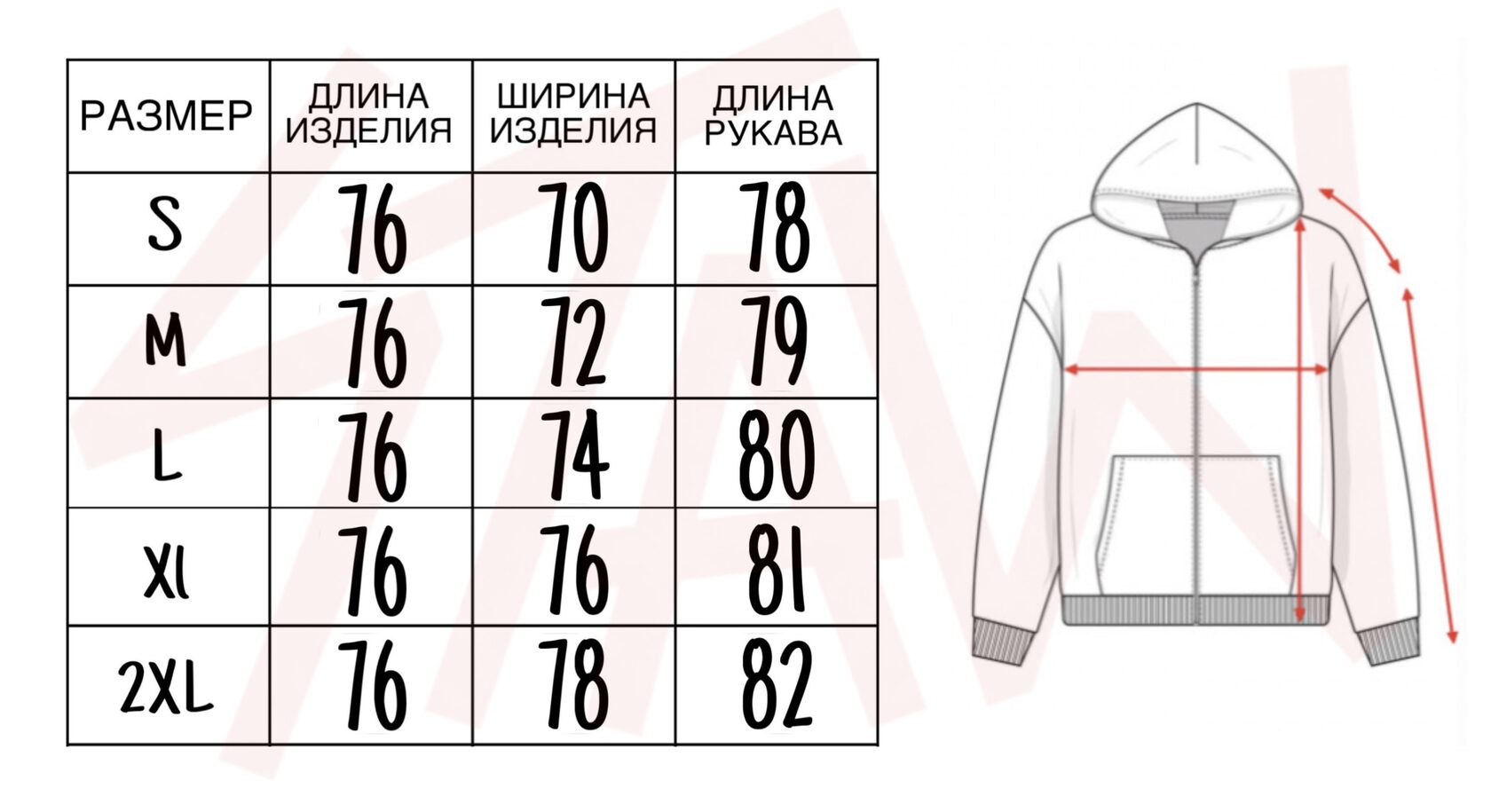 Рекомендация по выбору размера Для максимально точного подбора размера рекомендуем взять кофту, которая хорошо сидит на вас, снять замеры по основным параметрам и сравнить их с нашей размерной сеткой.